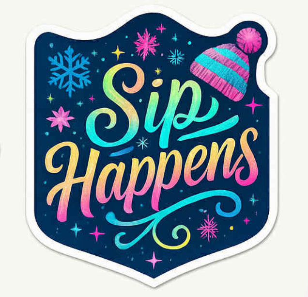 Bring a touch of winter charm to your everyday essentials with our Sip Happens Winter Luxe Sticker. Designed in our signature rainbow gradient and accented with sparkling snowflakes and a cozy knit beanie, this piece blends playful personality with boutique-level style.